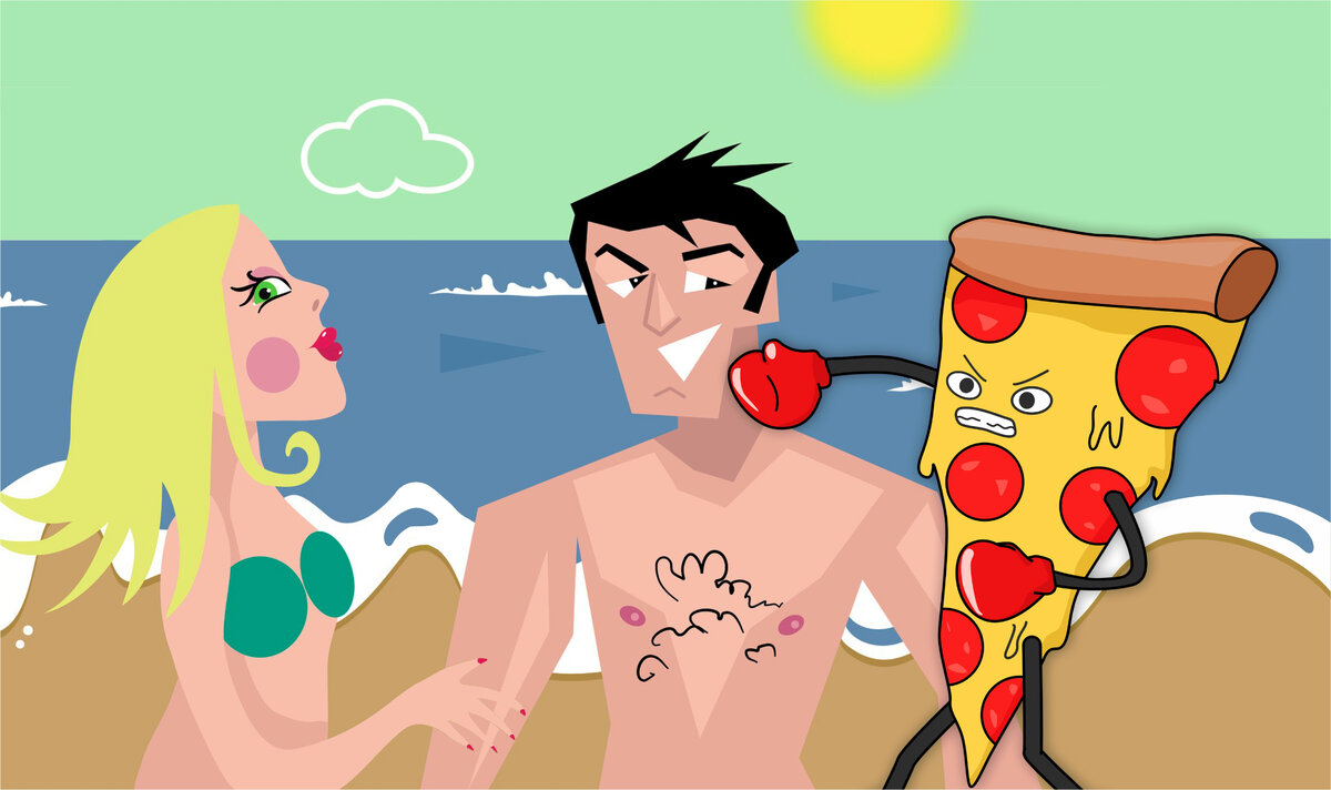 Случилось это как-то раз однажды летом. Купили мы в одной кулинарии, что попалась нам по дороге на набережную, одну на двоих пиццу со странным названием "Дикая". — Где сожрём? — шутливо спросил я свою подругу. — Здесь или на набережной? — Давай на набережной, — кивнула она, весело улыбаясь. Пришли мы, значит, на набережную, на пляж, разделись до купальных нарядов, расположились на специальной тряпке возле плещущейся воды. — Ну, доставай пиццу, — говорит мне подруга. — Слопаем по кусочку — а то жрать хочется, аж пузо сводит! — и мыться пойдём. — Давай, — согласился я, открывая коробку с пиццей. — Ой, блин!.. — Что с тобой?.. — Смотри! — прошептал я, поворачивая к глазам подруги открывшуюся пиццу. — Ой!.. — вскрикнула она. — Кошмар какой!.. Нагло улыбаясь, на нас из коробки взирала чья-то противная морда! — А... где же наша пицца? — спросила подруга у морды. — Вы, что, меня не узнали? — усмехнулась пицца. — Это же я! Ваша пицца! — Какая же ты "наша пицца"? — возмутился я. — Мы не таку