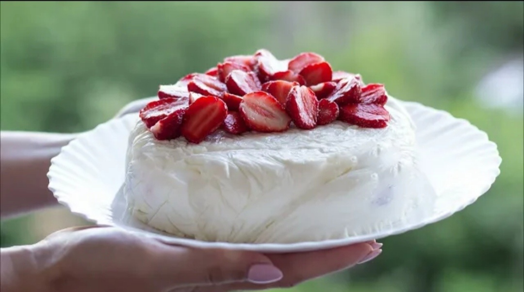 Десерт без выпечки.Летний,лёгкий творожный торт с клубникой