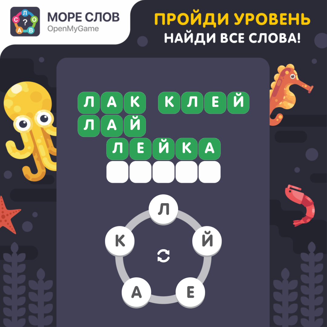 Удалось найти слово? Не останавливайтесь и продолжайте путь по «Морю слов». Там спрятано еще больше слов.