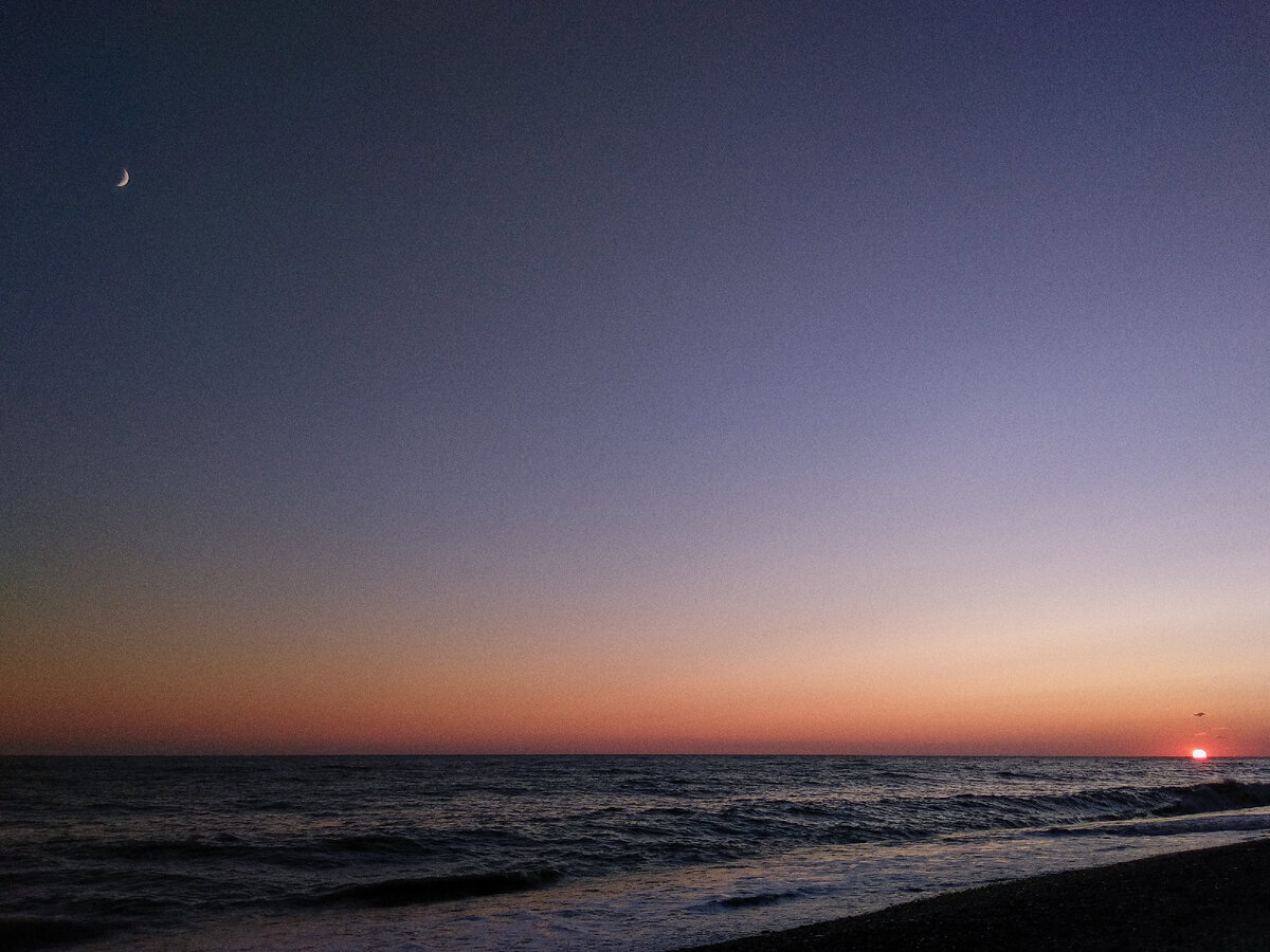 Мы решили, что сегодня спим на берегу, под звёздным небом. Изначально идея выглядела как ночёвка под звёздным небом где-нибудь в горах, но в этом походе как-то не вышло. В завершении вечера пришёл пёс и слушал наши разговоры. Мы угостили его хлебцами, и он улёгся рядом. Подумали, что так даже будет спокойнее — наша ночная охрана. Ветер приносил свежий морской воздух, небо было ясное, усеянное звёздами. Оставляя за собой линию, которая мгновенно исчезла, пролетел метеороид. Следом пролетел другой так, что если бы линии оставались подольше, получился бы крестик. Я решил, что это своеобразная отметка — значит нахожусь в том самом месте, в то самое время!