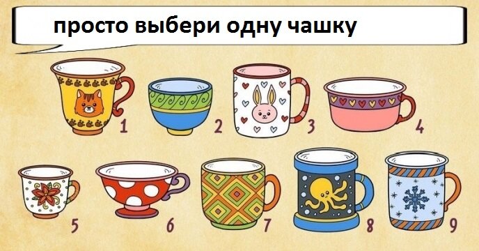 В этом тесте вам просто нужно выбрать одну чашку и при соответствующем выборе вы обнаружите разные стороны своего характера. Итак какую чашку вы выбрали?