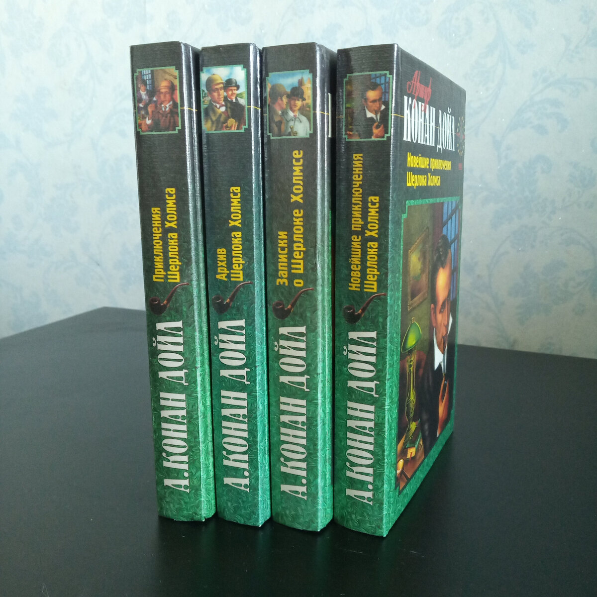 Артур Конан Дойл. "Записки о Шерлоке Холмсе", куда же без них. Впервые книгу о Холмсе мне дала почитать наша пожилая соседка. Это была "Собака Баскервилей". Я тогда учился в младших классах и, признаться, ничегошеньки из прочитанного не понял. Даже не помню, дочитал ли я её тогда, но память о первом знакомстве осталась. Потом через несколько лет, в классе в пятом или шестом мне кто то дал "маккулатурное" светло-коричневое издание. Вот тогда-то я проникся по настоящему. До этого попав, (как и все без исключения) под очарование лучших в мире Холмса-Ливанова и Ватсона-Соломина. Я их до сих пор, с удовольствием пересматриваю, хоть давно там известен каждый штрих и каждый шорох. Даже дедукцией в отрочестве занимались, что то в блокноты выписывали. Вот ведь... Именно этот сборник я купил себе гораздо позже, просто для того, чтобы он жил в моем доме. Что бы я и мои дети чувствовали это присутствие. Чувствовали энергетику уютной квартиры на Бейкер стрит.