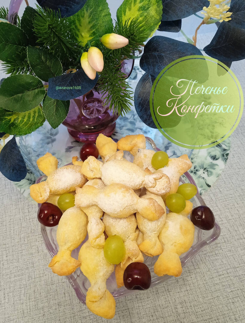 Всего шесть ингредиентов, 10 минут на приготовление, 15 на выпечку и вкусные конфетки у вас на столе :)... Ингредиенты: масла (50 г масла сливочного и 50 г сливочного маргарина), сметаны, желток, муки (+ 2 ст.л на формовку), разрыхлителя, сгущенное молоко варенка Способ приготовления: В миске смешать мягкое масло (можно только сливочное или только маргарин, у меня пополам и того, и другого) и сметану, добавить желток, перемешать, добавить муку с разрыхлителем, замесить мягкое тесто. Муку добавлять постепенно, чтобы не забить тесто. Долго месить не надо - просто собрать все в мягкий ком, не липнущий к рукам. Затем тесто поделить на три части. Каждую раскатать не очень тонко, разрезать на восемь частей. В середину каждой части положить по пол-чайной ложки варенки, завернуть от узкой части к широкой, скрепить края и завернуть конфетой. Можно слепить несколько конфет-подушечек. Конфетки уложить на противень. Выпекать в разогретой до 200 градусов духовке 10-12 минут до золотистости. Готовые