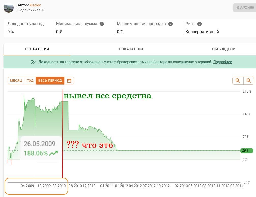 В этом году снова начал работать с брокером Финам. Вернулся спустя 12 лет. Подключил личные кабинеты, которые сохранились. И о чудо! Я нашёл в архиве свою стратегию с рекордной доходностью 188% за полгода. Счёт был небольшим, не более 200К. Но почти всё вывел в 2009 году, когда Финам начал "чудить" с вводом комиссий по 41,3 рубля за одно поручение. Тем не менее видимо какой-то дефолтный шлак там остался, за счет которого обнулили показатель доходности. Чемпион инвест стратегий comon 2009 В 2009 году 188% за несколько месяцев - это был какой-то фантастический результат, в годовых тогда показывало более 350% и стратегия была на первом месте. Да-да, в 2009 году я был Чемпионом по доходности среди хомячков )) Сейчас сотнями процентов в год уже почти никого не удивишь... Набрал несколько подписчиков, стал давать сигналы по ликвидным акциям и заработал 30 тыс рублей бонусами, которые Финам так и не выплатил. Сослались на кризисное время и отсутствие механизма выплат. Они тогда только прид
