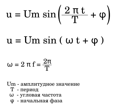В большинстве случаев, под переменным напряжением понимают напряжение изменяющееся по синусоидальному закону и описываемое уравнением