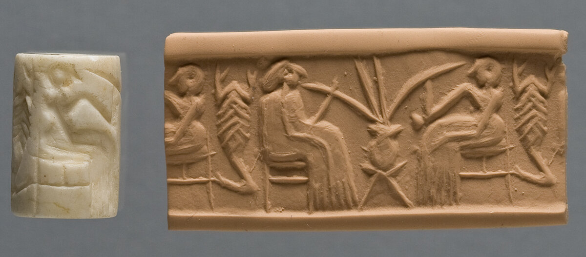 Двое людей пьют пиво. Оттиск цилиндрической печати. Ок. 2600-2350 года до н. э.