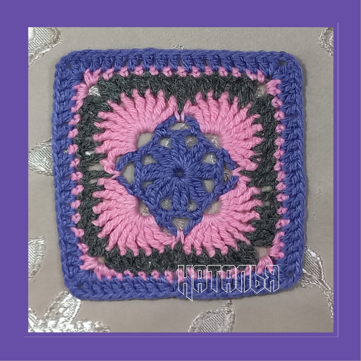 Здравствуйте,мои дорогие рукодельницы . Для любителей вязания квадратных мотивов крючком предлагаю интересный вариант квадрата. Я связала 2 мотива в разных цветах . 1. 2. Схема квадратного мотива : Описание вязания квадратного мотива: Провяжем 4 ВП ,соеденим их в кольцо СС. 1 ряд. 4ВП. 1 Сс2Н. 2вместе.*3ВП. 2незаконч.Сс2Н. 3вместе. повторять от*6 раз. 3ВП. СС. 2 ряд. 2 ПС. *арка из 5ВП. 1С в арку 1 ряда. повторять от*7 раз. СС. 3 ряд. Нить другого цвета закрепляем в арку 2 ряда. 3ПС. *11Сс3Н между ними 1ВП. 1С в следующую арку 2 ряда. Повторять от*3 раза. СС. 4 ряд. Нить другого цвета закрепить между лепестками. 4ВП. 4СсН. Между ними 1ВП. (Уголок)В1петлю2незаконч.Сс1Н. 3 вместе. 3ВП. )В 1петлю 2незаконч.Сс1Н. 3 вместе. 4 СсН. Между ними 1ВП. 1Сс2Н между лепестками . Вязать до конца ряда формируя уголки. СС. 5 ряд. В этом ряду я сделала обвязку через 1 петлю а не по схеме. Если связать по схеме ,то получается волнистый край. В уголок 2С. 2ВП. 2С. Провязала 6 ряд СсН чтобы получи