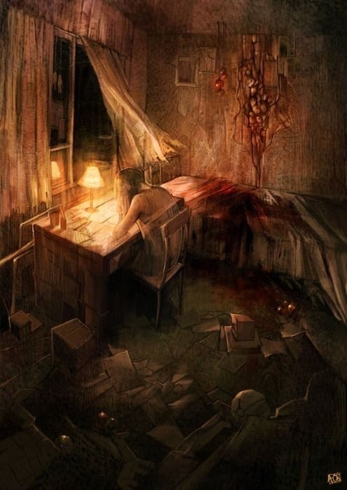 Привет, Друзья! Небольшое объявление. Я практически полностью переехал на сервис ЛитРес. Теперь, мои произведения вы можете найти в ЛитРесе и в MyBook. Ссылка на мой профиль в конце каждого поста 👇 Ну и небольшая жуткая картиночка в этот выходной. Вообще, она очень напоминает Silent Hill The Room, 4 часть жуткой серии. Но так же можно представить работу писателя. Я на ЛитРес.