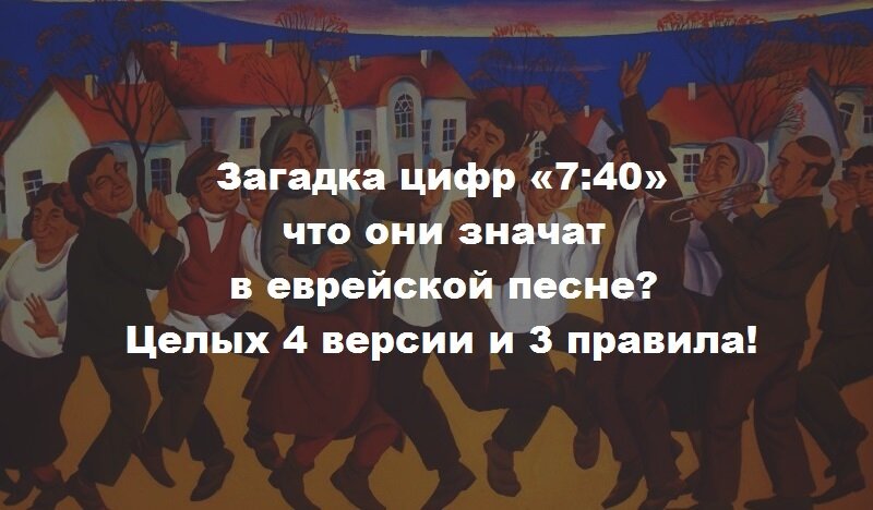 Все знают, что «7:40» это еврейский народный танец со словами, где есть какие-то «семь сорок»? Она стала хитом и обязательным атрибутом всех вечеринок и гулянок в СССР. Но что значат эти цифры? Я нашла 4 версии возникновения цифр в этой еврейской песне.