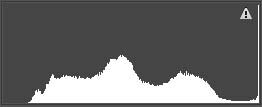 Во многих аппаратах и программах обработки фотографий, гистограмма имеет кроме графика еще сигнатуру которая сигнализирует о происходящем, например в RAW конверторе Camera Raw по краям гистограммы находятся треугольники (хотя они больше на сердечки или капли похожи), цвет которых показывает, ест ли потери и в каких каналах.