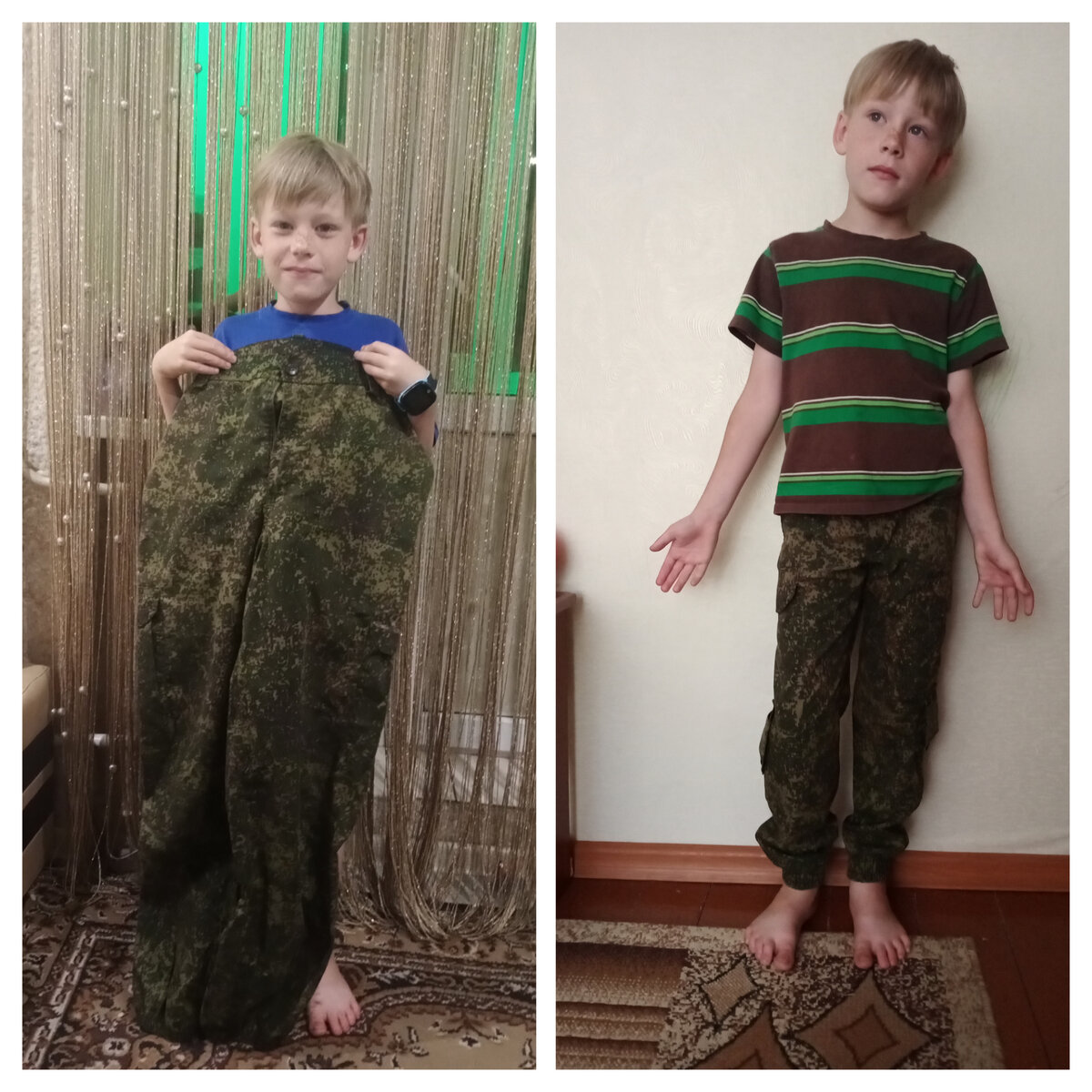 Сына в лагерь отправлять скоро, я в шкаф, смотреть, что там по вещам, а у него штанов толком нет, все коротковатое... Можно, конечно, пойти в магазин... Но... Пошла я порыться в своем барахлишке, которое именуется "перешьюкогданибудь". Нашла там форму солдатскую какую-то... Кто-то мне ее отдал с другими вещами, не помню кто. Состояние хорошее, ткань хорошая, тонкая х/б-шечка... Выкройку я взяла на сайте Шкатулка, детские брюки карго. Ссылку дам в комментариях. Размер моего сына был платный, на карте в тот момент оказалось по нулям, и я распечатала выкройку на 2 размера меньше, размер, который был бесплатный, и просто дала большие припуски, и добавила длину. В итоге, я таки пошила брюки по тому размеру "на два размера меньше", так как сын у меня худой😂 Брюки не слишком свободные, и не в облипку, Вовчик доволен) Теперь еще шорты и панамку из этой же ткани буду шить. P.S. У сына размер 134, я шила по выкройке размера 122. Накладные карманы у меня другие, так как я спорола их го