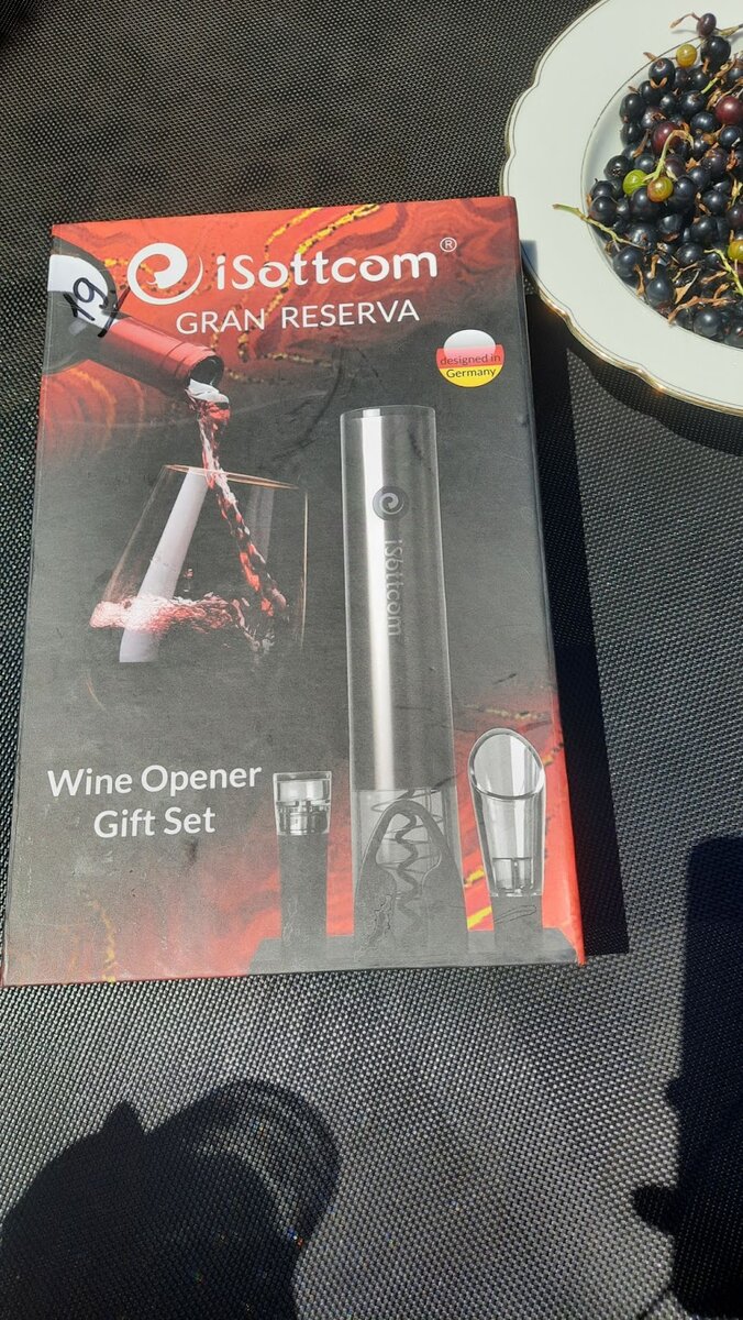 В хорошей компании или за просмотром фильма приятно выпить бокальчик вина, а еще это приятнее делать на даче. Хорошее вино требует к себе особого отношения, и я для этого купила целый набор помощников от iSottcom. В набор входят - электрический штопор, аэратор для вина, пробка для бутылки, нож и брошюра. Электрический штопор просто шикарен. Работает он от 4 батареек, но при этом не громоздки, а очень аккуратный и легкий. Корпус штопора стальной черного цвета с приятной подсветкой, что делает его очень стильным. На корпусе всего одна кнопка. Сначала она запускает штопор в одну сторону, чтобы вытащить пробку. При втором нажатии штопор крутится в другую сторону и сбрасывает пробку. Работает штопор быстро и тихо, на все уходит буквально несколько секунд. Штопор сделан из особо прочной стали, поэтому он легко входит в любую пробку и не ломает ее. Так что в вино не попадет ни крошечки. А самое главное, с таким штопором бутылочку вина без лишних усилий сможет открыть любая даже самая хрупкая