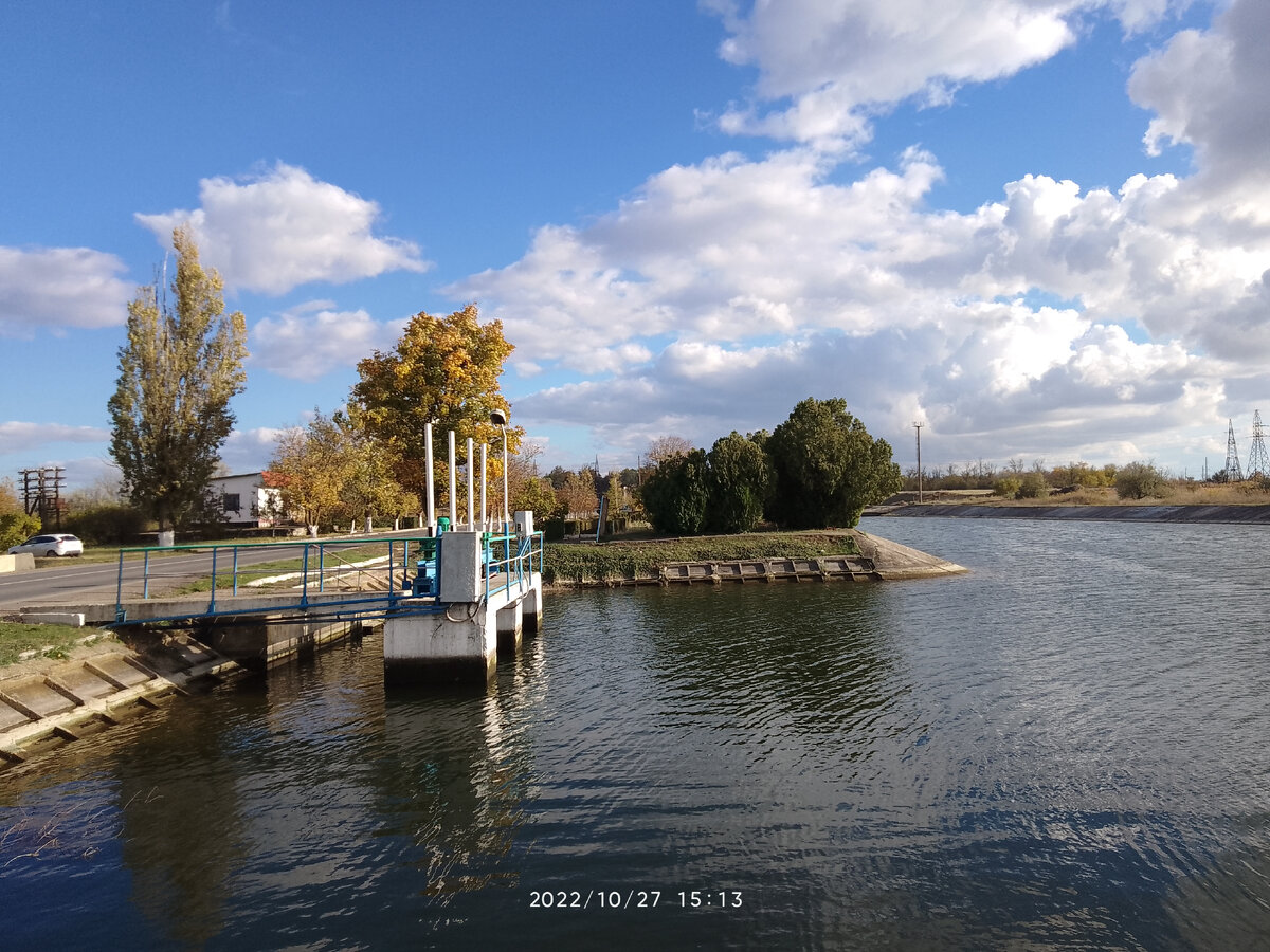 А что канал? Наполнен водой. И хотя для нас с его наполнением ничего не изменилось, а всё равно приятно осознавать, что воды хватает всем, что никакая засуха никому не грозит. К тому же приятно видеть эту самую воду. Потому что постоянно мимо проезжаем. Потому что бывает гуляем вдоль этого канала с собаками. Везде добавлены предупреждения, что купаться запрещено, а возле насосной станции и рыбная ловля запрещена. Не смотря на надписи и прочее возле моста у Джанкоя народ купался и загорал, прыгал и нырял всё лето. Сначала, когда канал наполнился водой, тут, у станции появились рыбаки. Потом они начали прибывать и их становилось всё больше и больше. И машин тоже было много. А потом появились запрещающие надписи. Но рыбаки не могли понять, что написано на стенках канала. Тогда к надписям добавились полицейские органы и рыбаки исчезли. Изредка они ещё посиживали в малых количествах, пока специальные машины не стали появляться регулярно. Сейчас их, рыбаков, тут не видно совсем. Это боков