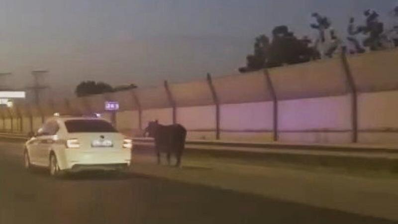 Бык в сопровождении полиции пробежался по Киевскому шоссе — видео