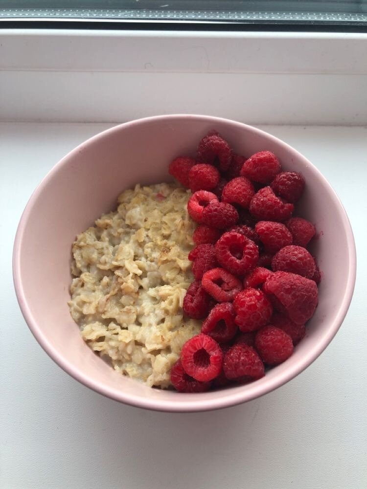 Завтрак На завтрак лучше есть какую-либо кашу. Она даст энергию организм и приятное чувство сытости. Будет очень здорово если добавить к ней свежие фрукты и ягоды, оно очень богаты витаминами, а сахар заменить сахарозаменителем. Также на завтрак лучше пить не кофе, а чай. В чае содержится больше кофеина, чем в кофе, как бы странно это не звучало. Сегодня на завтрак у нас овсяная каша со свежей малиной и зелёный чай. Также можно добавить кусочек хлеба, но если вы хотите похудеть, то хлеб лучше исключить из своего рациона на время похудения. Обед На обед полезно есть мясо, например запечённое куринное филе, запекается оно без масла, поэтому это будет полезнее. К курице можно добавить перловую кашу и сливочный соус, чтобы было не сухо. Также обязательно употреблять в пищу свежие овощи, помидоры вполне подойдут. По желанию можно добавить легкий куриный бульон, если вы боитесь, что не наедитесь только вторым блюдом. Сегодня на обед курица с перловой кашей в сливочном соусе и свежие помидор