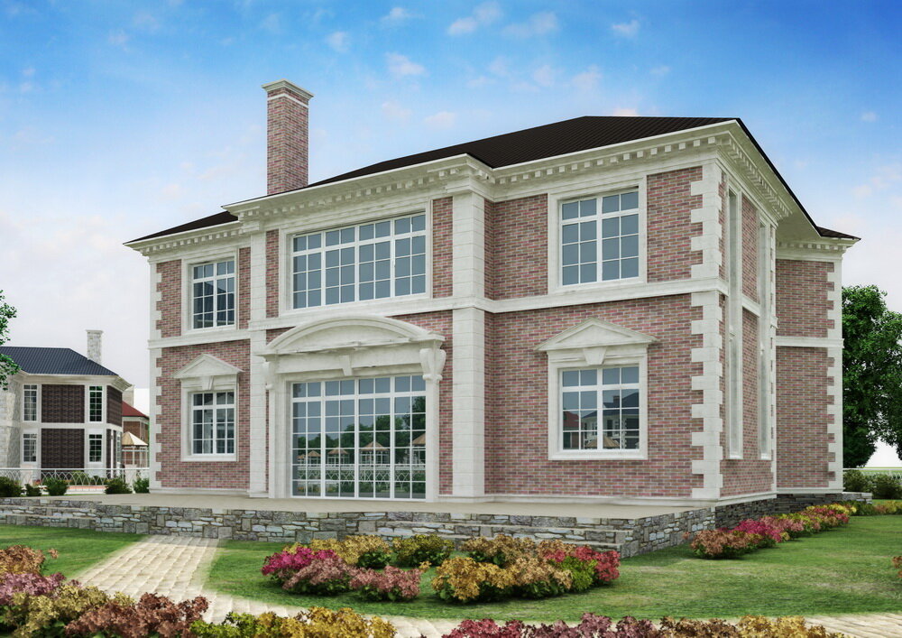 Для строительства дома в эту эпоху, чаще всего, использовали красный кирпич, а для наружного декора применяли колонны и пилястры.