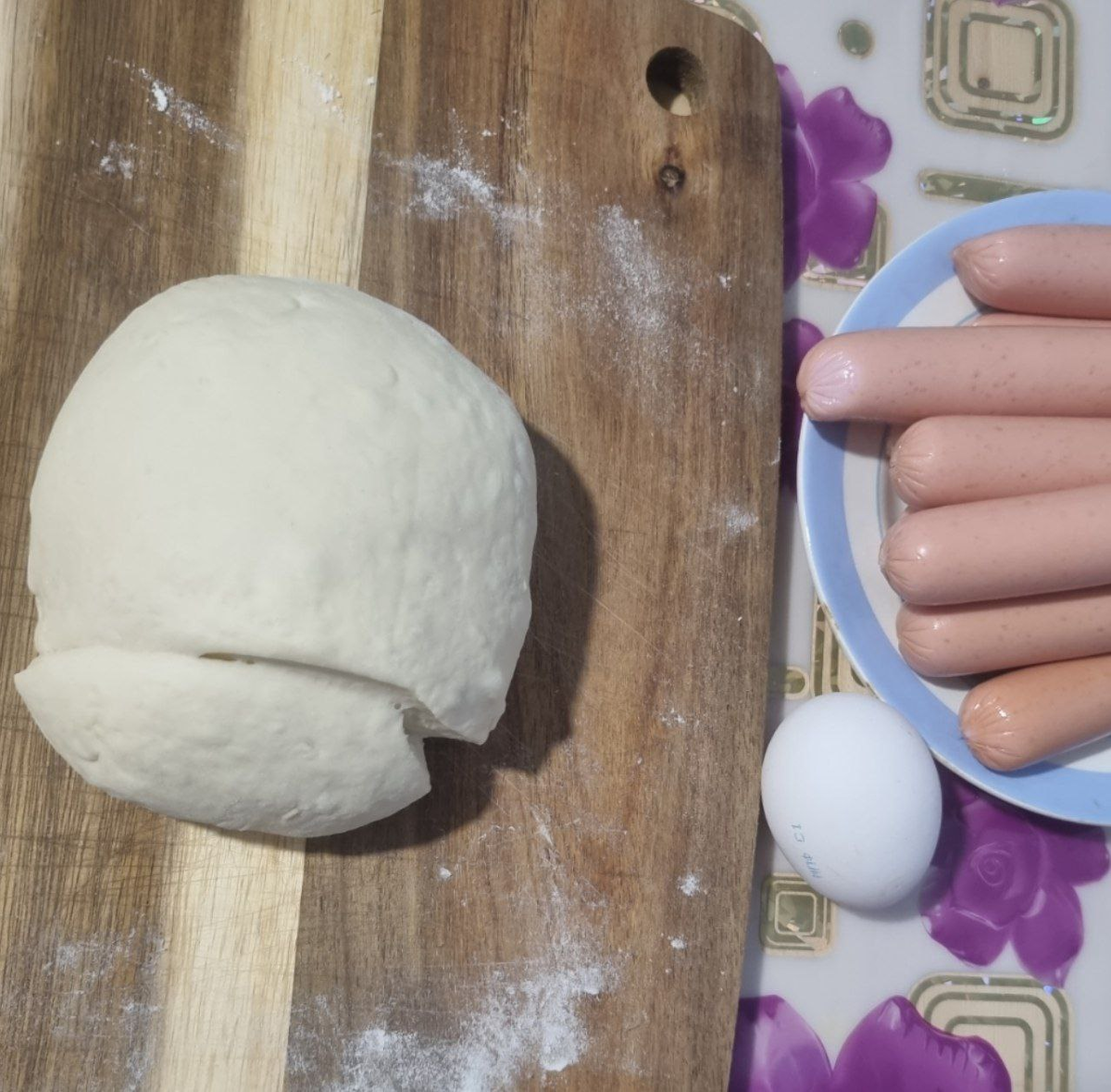 Яйцо куриное - 1 шт Тесто раскатываем в овал. Разрезаем на длинные полоски небольшой ширины. В одну ленту из теста заматываем сосиску, выглядеть должно как спираль. Выкладываем произвольное количество сосисок на противень, оставляем на минут 10. Далее смазываем яичным желтком и ставим в духовку на 180 градусов на 30 минут. Готово!