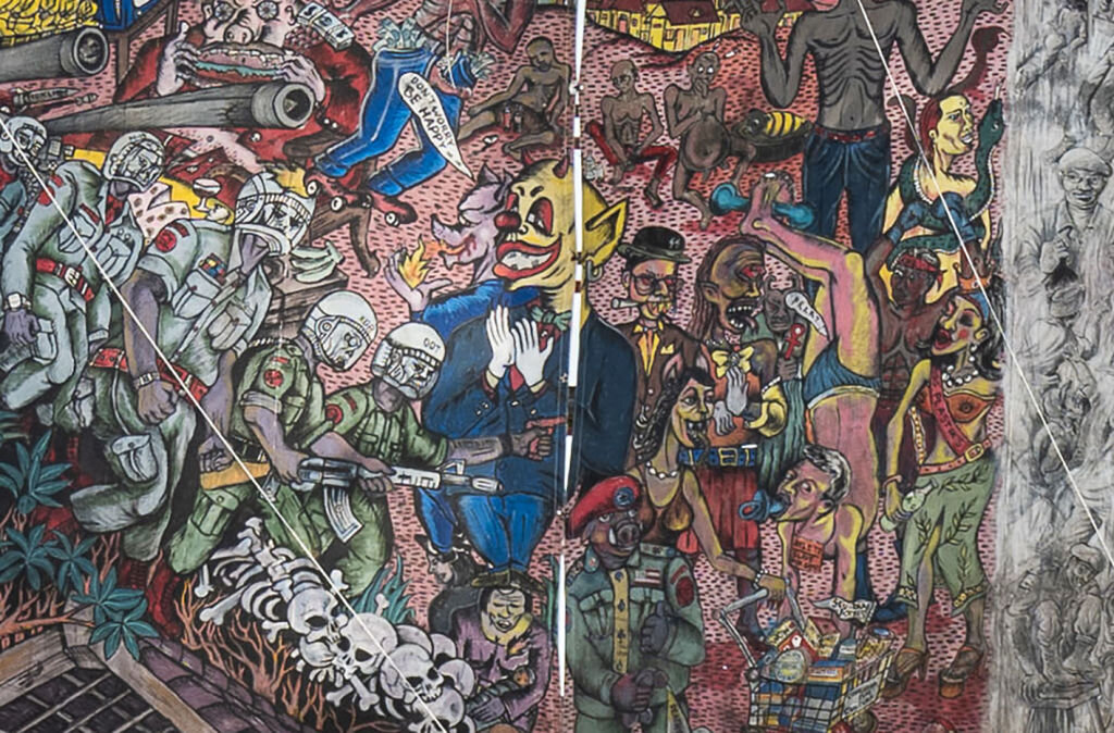 Случается в Германии раз в пять лет знаковое событие - выставка современного искусства под названием documenta. Масштаб этой выставки действительно велик. Собственно, как и скандал, разгоревшийся вокруг documenta на днях. Причина - антисемитизм, ни много, ни мало. Все немецкие газеты пестрят статьями на эту тему, а вот наши СМИ, почему-то, особого внимания на этот счет не обратили, а зря. Индонезийский коллектив представил на фестивале монументальную работу "Народная справедливость", посвятив её своей истории (периоду тридцатилетней диктатуры Сухарто). Что изображено на этой мурали - без 100 грамм, конечно, не разобрать. Да и от 200 грамм легче не станет... Но если очень захотеть - можно что-то разглядеть. Как-то вдруг и невзначай на этом произведении искусства обнаружились карикатуры на евреев, и не так, чтоб очень смешные. Во всяком случае, немецким евреям уж точно было не до смеха... Олаф Шольц, чей визит на эту выставку был запланирован на 23 июня, конечно слился. Собственно гово
