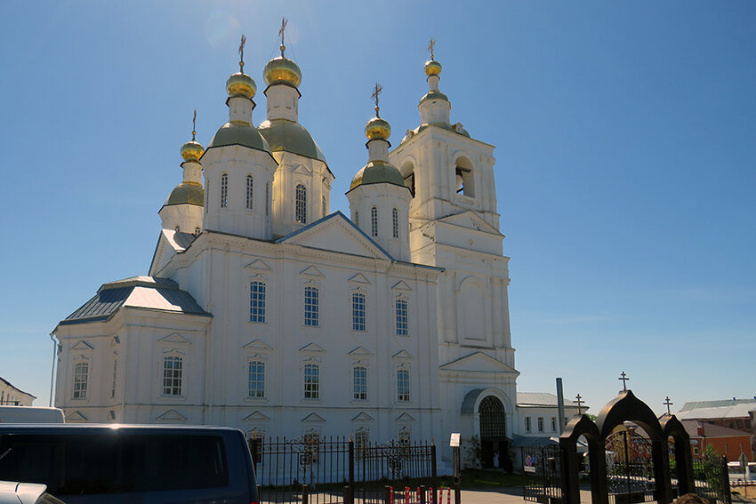 А впереди во всей красе (и в строительных лесах) возвышается монументальное, величественное здание Воскресенского собора. 48 колонн украшают его фасады, красивые росписи, иконы, блеск золотых куполов.