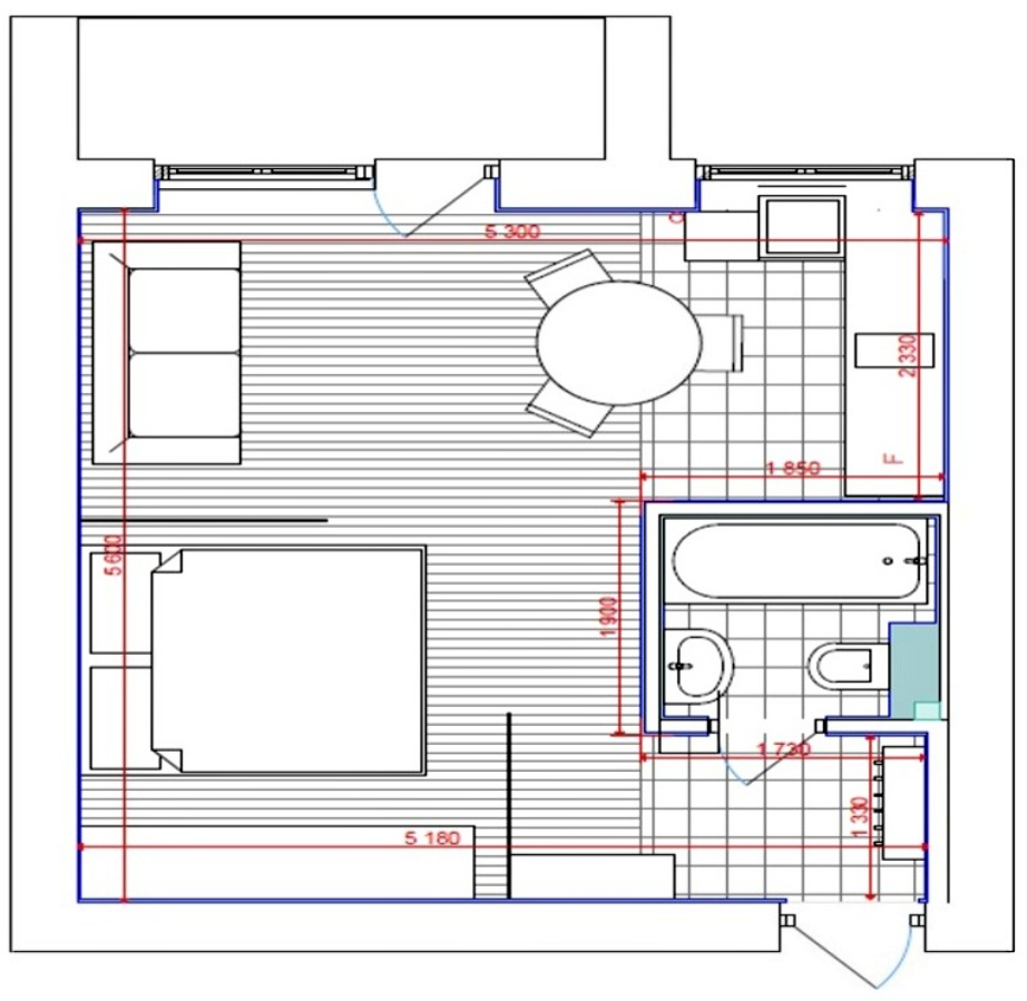 Наша героиня приобрела эту квартиру для того, чтобы в дальнейшем отдать своему сыну. Но пока сын не вырос, она решила её полностью отремонтировать и сдавать в аренду. В конечном итоге, типовая квартира превратилась в открытую студию. Проект Вся квартира выполнена в светлых тонах. Перегородки были демонтированы и кухню объединили с комнатой. В зоне гостиной расположился диван, который при необходимости можно разложить. Напольное покрытие в жилой зоне сделали из ламината, а в зоне прихожей и кухни выложили плитку (имитирующая ламинат). В прихожей и гостиной, часть стен выложили белым клинкерным кирпичом. Так же кирпичные мотивы прослеживаются и на кухонном фартуке. Кухонные фасады выполнены в белом цвете. Мойку решили расположить у окна, для этого немного приподняли подоконник. Обеденный стол расположили на стыке гостиной и кухни. Над столом появился телевизор на поворотном кронштейне. Спальную зону зонировали большим стеклом и шторами с эффектом блэк-аут. В спальне расположилась кроват