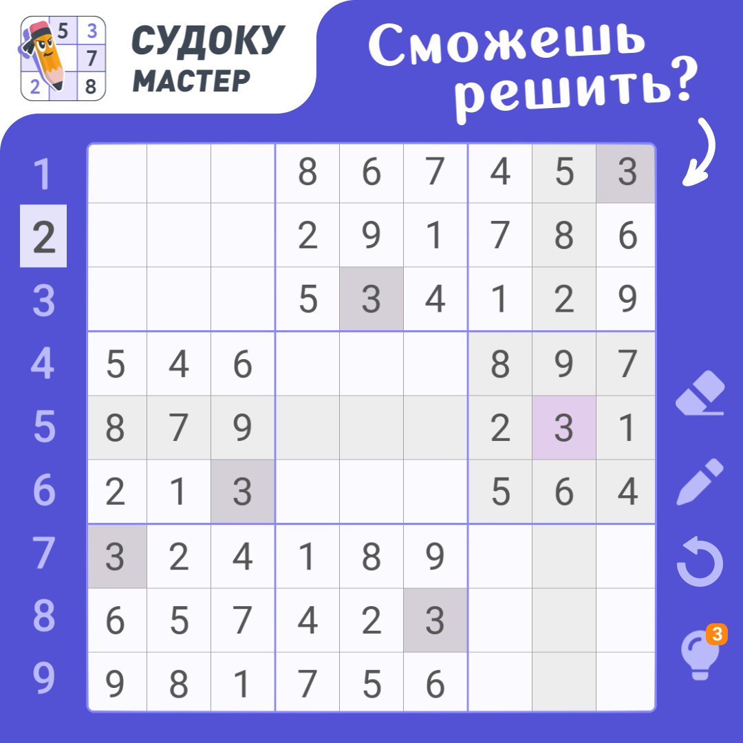 Выдался перерыв? Не теряйте времени, решите судоку! Изучите картинку и дайте ответ прямо в игровом окне.