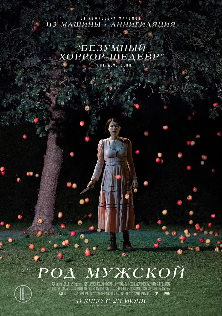 Хочется отметить, что благодаря студии А24 жанр ужасов стал восприниматься гораздо иначе. Киноленты этой студии стараются обходить различные клише и штампы, предлагая зрителю совершенно иной уровень данного жанра – пост-хоррор (другими словами, «возвышенный хоррор»), призванный вызывать страх неизбитыми приёмами вроде скримеров, а осознанием простой вещи: нет страшнее зверя, чем человек! За оболочкой разных монстров скрывается человеческая психология, которая пугает гораздо сильнее, чем простое эксплуатационное кино, поэтому стараюсь не пропускать ни одного фильма ужасов А24! Наш сегодняшний претендент – хоррор «Род мужской». Стоит ли он вашего внимания? Харпер, главная героиня фильма, решает отдохнуть в одиночестве после гибели мужа Джеймса. Ей нужно прийти в себя, поэтому она выбирает небольшую деревню, сняв особняк. Её гостеприимно встречает странный мужчина по имени Джеффри, рассказывающий историю этих мест. Прогуливаясь по лесу, Харпер выходит на заброшенную железную дорогу и вст