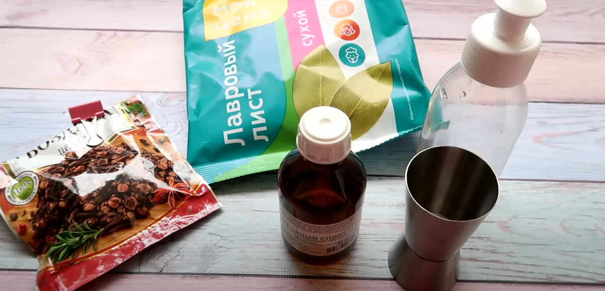 Друзья, всем привет. Летом особенно, но также весной и осенью, когда бывает тепло, я окна не закрываю. Хотя на окнах установлена сетка, но мелкие мошки, жуки и комары все равно каким-то образом залетают или проползают. Особенно это заметно на даче, и есть такой интересный совет, которым со мной поделилась бабушка, я о нем расскажу. Благодаря нему не будет никакой живности ни в доме, ни в квартире. Для этого способа нужно взять камфорный спирт, также понадобится гвоздика и лавровый лист. Все очень доступно и есть почти в каждом доме. Если нет камфорного спирта, его можно купить в аптеке, стоит он очень дешево, в районе 45 рублей. Все остальные ингредиенты есть на кухне каждой хозяйки. 20 миллилитров камфорного спирта выливаем в какую-либо емкость, я беру обыкновенную бутылочку, можно взять с распылителем. Переливаю туда. Далее нужно добавить несколько гвоздик, я беру обычно две или три. Туда же добавляем лист лаврушки, его я советую предварительно разорвать на маленькие кусочки для бол