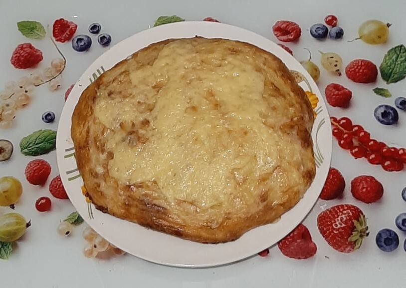 #готовимвместе Я очень часто готовлю шаньги . Я уже говорила, я продолжила традиции. И тут я вспомнила, когда я приезжала в деревню, бабушка готовила одну большую шаньгу. Здесь я только добавила еще и сыр. Очень оригинально и вкусно получилось. Ингредиенты: Тесто сдобное дрожжевое или дрожжевое, Картофельное пюре готовое, ст.л Майонез, Яйцо, Сыр тёртый Способ приготовления: Противень смазать майонезом, выложить тесто, сформировать круг, смазать майонезом. Сверху выложить пюре, разровнять силиконовой кистью, смазать майонезом. Поставить в разогретую духовку. Выпекать 20 мин при температуре 180 °. Как только шаньга подрумянится, вылить половину взбитого яйца и посыпать сыром, и еще раз поставить в духовку. Приятного аппетита.