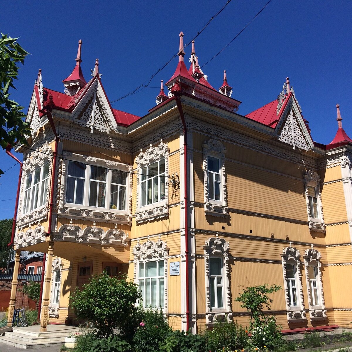 Купец второй гильдии, Леонтий Желябо, сделал своей дочери Варваре поистине роскошный свадебный подарок — дом с жар-птицами. Усадьба Желябо — один из центральных символов города Томска. В 1896 году главный архитектор Петр Федоровский разрешил строительство тогда отставному фельдфебелю Леонтию Желябо. А позже сам спроектировал и построил усадьбу: сначала дом для купца, потом дом для аренды. Завершающим элементом усадьбы в 1903 году стал резной флигель. Улица красноармейская (в прошлом Солдатская) богата шедеврами деревянного зодчества. Из-за того, что центральные улицы отводились под каменные здания, дома из дерева разрешалось строить на тихих, отдаленных улицах. Флигель расположен во дворе основного дома. Простую форму здания (квадрат) дополняют эркеры с двух сторон. Дом восхищает сдержанностью контура и богатством резного декора. По сложности резьбы, по оригинальности оформления он по праву достоин отдельного внимания — такого интересного орнамента в Томске вы больше не найдёте. Тут не