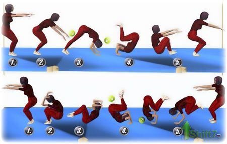 Этот вид считается самым сложным и опасным из трёх. Специалисты утверждают, что главный навык при выполнении данного упражнения – умение правильно сгруппироваться. Подготовка к трюку состоит из двух упражнений, которые придётся отточить до автоматизма:
