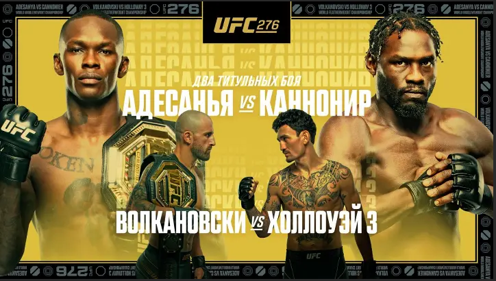 Уже в это воскресенье состоится турнир UFC 276, в карде которого пройдет целый ряд ярких и интригующих поединков. В главном бою вечера сойдутся чемпион в среднем весе нигериец Израэль Адесанья (22-1, 11-1 в UFC) и №2 рейтинга американец Джарред Канонир (15-5, 8-5 в UFC). Оба бойца являются базовыми ударниками, поэтому точно можно сказать, что никакой борьбы здесь не будет. Да и по большому счету никакой интриги тоже не прослеживается. Адесанья идет огромным фаворитом, и успехом для Джарреда в этом бою будет даже проигрыш по очкам. Если Адесанья же не сумеет финишировать своего соперника, то, скорее всего, за счет большей длины конечностей Израэль просто продержит Канонира на нужном расстоянии, и перестреляет с дистанции. Во втором по значимости бою турнира мы увидим третью часть противостояния между чемпионом полулегкого веса Александром Волкановски (24-1, 11-0 в UFC) и бывшим чемпионом Максом Холовеем (23-6, 19-6 в UFC). Первые 2 боя выиграл Александр, но их сценарий был совершенно ра