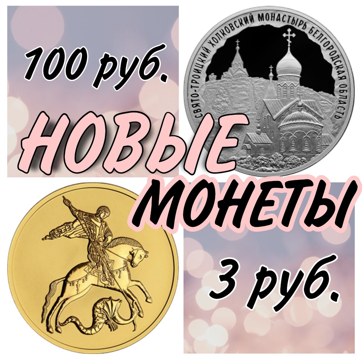 Пресс-служба Банка России 29 июня 2022г. сообщила о выпуске в обращение новых монет: Указанные монеты являются законным средством наличного платежа на территории России и обязательны к приему по номиналу во все виды платежей без ограничений. Инвестиционная золотая монета «Георгий Победоносец» Номинал - 100 рублей. Каталожный номер - 5217-0048. Масса драгоценного металла в чистоте - 15,55 г, проба - 999. Монета изготовлена качеством «анциркулейтед». Тираж - до 300 000 штук. Боковая поверхность - рифленая. Монета имеет форму круга диаметром 30,0 мм. С лицевой и оборотной сторон монеты по окружности - выступающий кант. Лицевая сторона монеты. На лицевой стороне имеются: Оборотная сторона монеты На оборотной стороне монеты находится рельефное изображение Георгия Победоносца на коне, который поражает копьем змея. Памятная серебряная монета номиналом 3 рубля «Свято-Троицкий Холковский монастырь, Белгородская область» серии «Памятники архитектуры России» Каталожный номер - 5111-0465. Но
