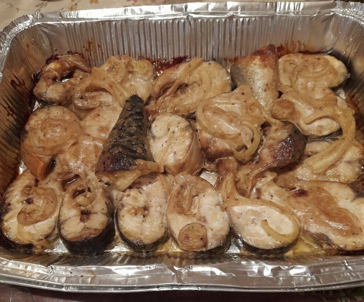 Скумбрия запеченная в соево-сметанном-горчичном соусе