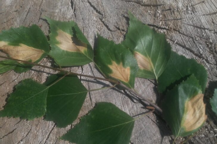 Листья вяза, липы и березы пожелтели раньше времени в лесах под Новосибирском. Как считают ученые, дело может закончиться ранним листопадом. Засушливое начало лето или вредители и болезни – эксперты спорят о причинах пожелтения лиственных лесов в середине лета. Как сообщил VN.ru биолог Алексей Яновский, листья желтеют пятнами. Это похоже на поражение минирующей молью. «На листьях березы сейчас видны места, откуда моль уже народилась», – прокомментировал фотографию Алексей Яновский. По словам ученого, пока пораженных листьев не так много, но в августе, когда у нового поколения моли появится потомство, дело дойдет до раннего листопада. Особенно будут страдать посадки тополя и березы. «Внутри этих листьев живёт маленькая личинка, которая выедает мякоть листа, оставляя только жёсткий наружный слой, который служит ей защитой от врагов», – предположения о минирующей моли подтвердил и доктор биологических наук, заведующий лабораторией биоразнообразия Центрального сибирского ботанического са