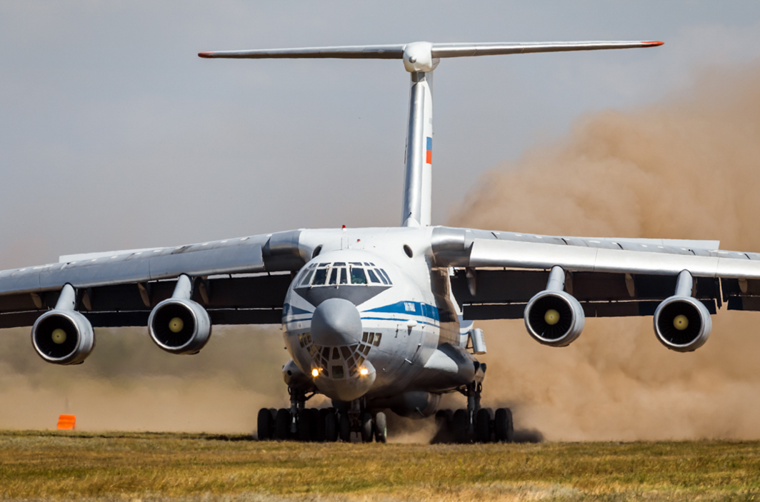 Многие знают, что военно-транспортный самолёт Ил-76 взлетает и садится на относительно ровные грунтовые поверхности, и что взлётно-посадочная полоса (ВПП) ему не нужна. Это связано с тем, что доставка грузов, техники и личного состава может потребоваться в такие места, где вообще нет аэродромов. Плюс ко всему аэропорт может быть, но его ВПП может быть частично повреждена. И в таком случае можно просто засыпать ямы и неровности грунтом, чтобы Ил-76 смог садиться и взлетать.