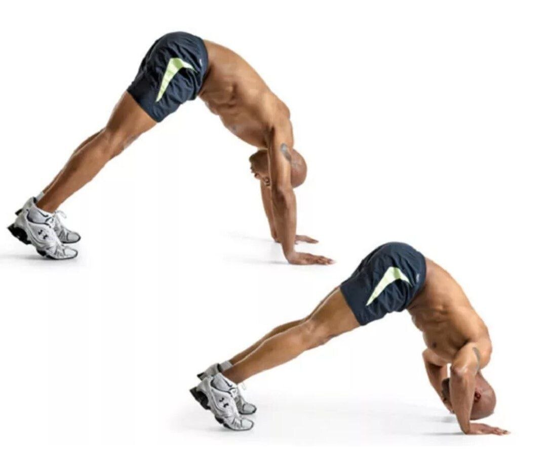 Добро пожаловать на канал! Существует миф,что без железа невозможно прокачать своё тело и обязательно нужно идити в зал,чтобы получить долгожданный результат. НО ЭТО ВСЕГО ЛИШЬ МИФ! В этой статье вы узнаете,как прокачать плечи,при этом не используя железо и не выходя из дома. Просто выполняйте этот комплекс упражнений 2 раза в неделю и результат не заставит себя ждать. Внимание! Итак,начнём! Упражнение 1 Техника выполнения: 1.Примите положение лежа и поставьте руки к ногам так, чтобы между ногами и туловищем образовался прямой угол.Стопы держим на носочках. 2.Начинайте отжиматься,опускаясь по длинной амплитуде до пола. 3.Вернитесь в исходное положение.Повторите нужно количество. Нагрузку можно менять изменением расстояния между носками и ладонями. Выполните 3 подхода по 10-12 раз. Упражнение 2 Выполняйте всё тоже самое что и в предыдущем упражнении,только на 3-ем шагу не возвращайтесь в исходное положение,а примите упор лежа(как это показано на картинке)и задержитесь на несколько секун