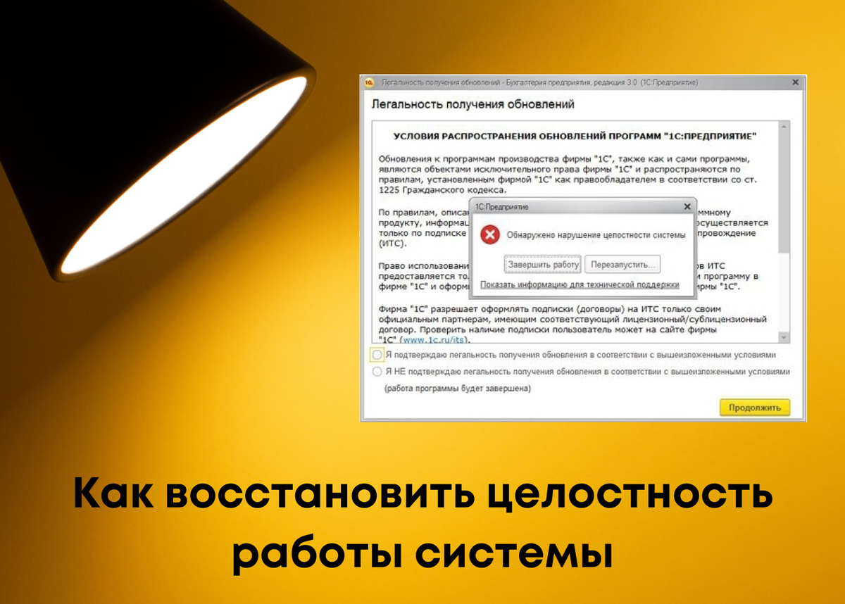 Для восстановления работоспособности программы «1С» необходимо:
