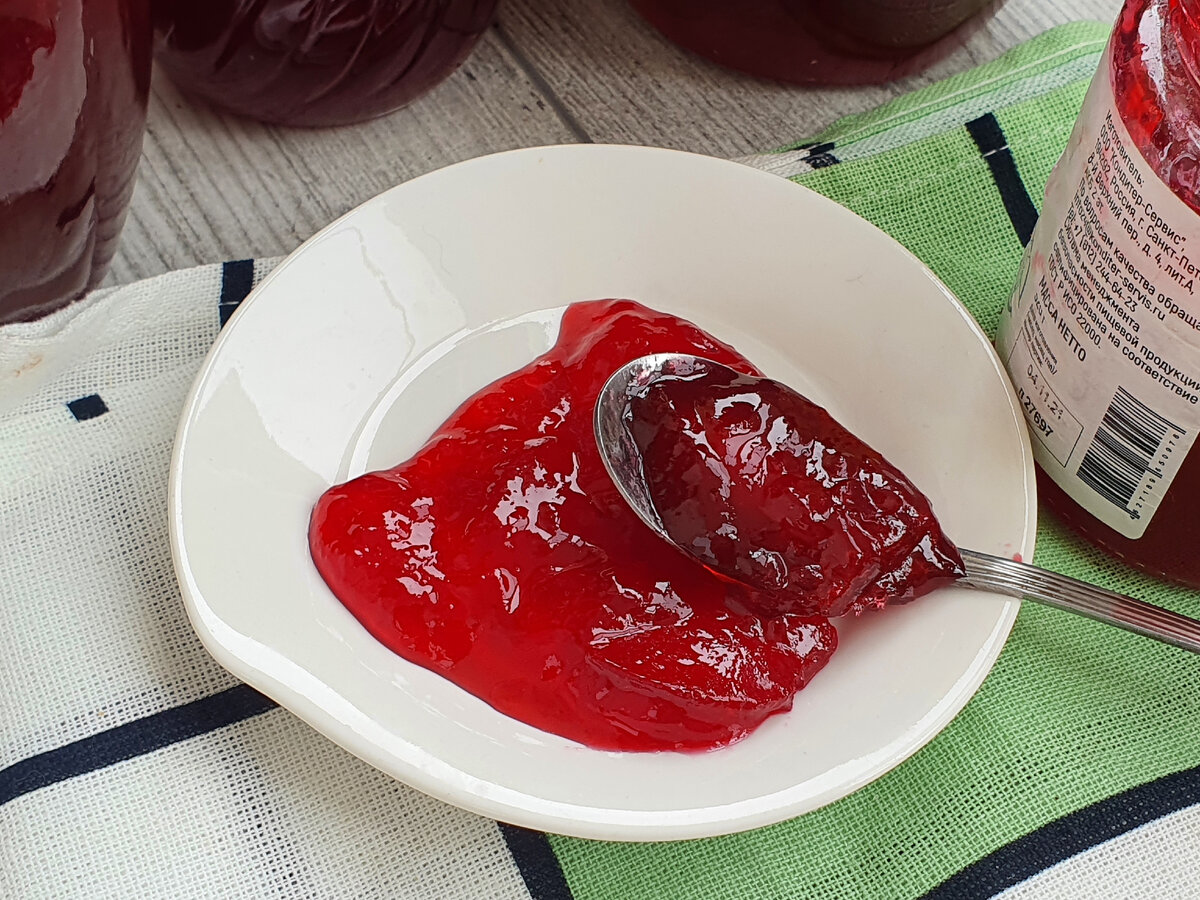 Сегодня я буду делать джем (его ещё называют желе) из красной смородины. Кто то перебирает ягоды и отделяет от веточек, честно говоря у меня нет ни желания, ни времени это делать, поэтому делаю вот так. ИНГРЕДИЕНТЫ Красная смородина 1 кг. Сахар 1 кг. Смородины у меня было 2, 5 кг. Поэтому и сахара я взяла 2.5 кг. При таком соотношении джем будет сладким. Если любите покислее, то уменьшите сахар. Сахар высыпаем в смородину и мнем деревянной толкушкой. Ставим на плиту. Ягода пускает сок. Нагрев у меня сильный. При варке джема я ориентируюсь на две стадии. В первую стадию поднимается пена. Поэтому кастрюлю берите высокую, чтобы ягоды занимали не больше половины кастрюли. Постоянно мешаем. Вторая стадия- пузыри. После того как пена перестанет подниматься вверх, будет плавать на поверхности , появятся бульки. Джем сейчас должен покипеть минуты 4. Вот и все. Откидываем джем на сито и перетираем насколько это возможно. Удобно делать силиконовой лопаткой. Банки заранее стерилизуем. Нали