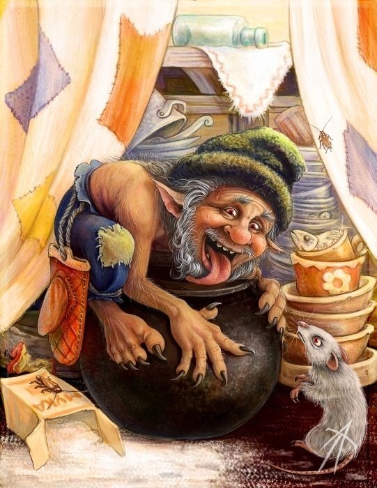 Один из многочисленных славянских домашних духов, он любит жировать - то есть получать удовольствие: жить в тепле или в подполье, незримо вертится возле хозяйки, занятой приготовлением еды, любит лизнуть блины да оладьи с пылу с жару. Возится по ночам с немытой посудой, вылизывая ее. Проказит не со зла, а просто от скуки или по свойству своего веселого нрава, забавляяс