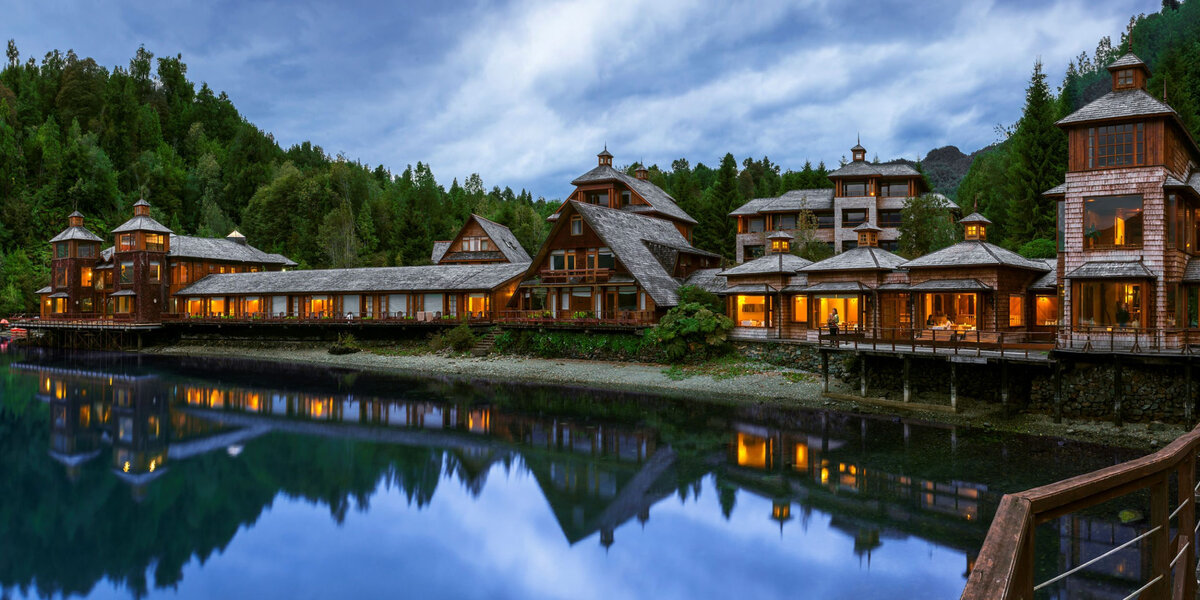 Этот отель расположен севернее национального парка Torres del Paine в районе города Бальмаседа. Это очень уединенное место, так что от города придется еще около 6 часов ехать на машине или, что гораздо интереснее, плыть 5 часов на круизном корабле по фьордам. Но это того стоит, потому что в отеле есть горячие источники и кроме того, если немного задержать в Бальмаседе и проехать на юг, то можно увидеть уникальные мраморные пещеры, которые находятся на озере, которое имеет два названия General Carrera (чилийское название) или Buenos Aires (аргентинское название). Увидеть пещеры можно только если озеро спокойное и нет волн. Кстати, говорят, что пещеры могут исчезнуть, если осуществятся планы построить огромные дамбы в этом районе. А сам уединенный отель стоит такой долгой поездки – здесь множество треков к озерам, водопадам, пещерам, фьордам.