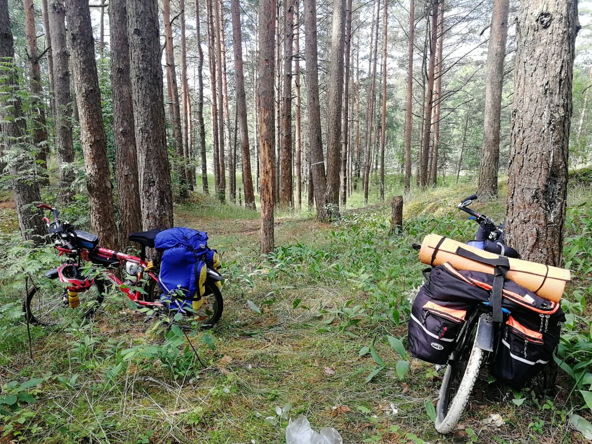 5 день велопутешествия! 11 июля! ПСКОВ Проснулись в 2 км от стеллы Псков в замечательном полезном сосновом бору! Комары разбежались, солнце плотно затянуто облаками. Я как всегда ковыряюсь в палатке, а чудотворные руки Оли делают лечебную полезную кашу на молоке))) вкусняшка! К 10 часам собрались, но у меня спустило переднее колесо (( Камеру менять не пришлось, оказалось достаточно только накачать. И вперёд, на Псков! Кусочек по трассе Е-95 нам совсем не понравился, технички нет, фуры, шумно. Хорошо, что мы поехали другой дорогой Р-58, решение было верным! Ещё насмотримся до Острова Е-95. Псков мы уже видели в ноябре и тогда посмотрели центр внимательно и не торопясь, пешком. https://zen.yandex.ru/media/id/62750f2cf71bb52534f1caa9/pskov-v-noiabre-627b7a4872280c2893ff3f00 Сейчас у нас другая цель - собрать грибы от грибомена! Мне эта затея понравилась, потому что так мы посмотрим город там, куда никогда бы не поехали! Например за больницами с грунтовой дорогой, где увидели этот крас