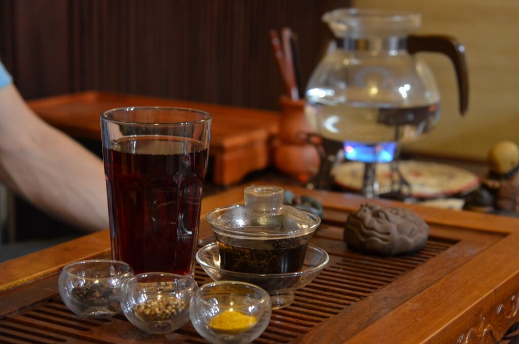 Есть один интересный способ приготовления – варка пуэра на вишневом соке. Для этого способа подойдет любой Шу Пуэр. Для варки пуэра на вишневом соке понадобится: ~10 граммов пуэра 200 мл воды 300 мл вишневого сока Специи – гвоздика, куркума, кориандр (или любые другие по вкусу) Как варить пуэр? Заливаете пуэр горячей водой чтобы промыть его, воду сразу же сливаете. Ставите воду на огонь и ждете, пока она только-только начнет закипать. Добавляете пуэр и специи: Уменьшаете огонь и варите на небольшом огне около 30 секунд с момента закипания Вливаете вишневый сок и доводите до кипения: Чай готов. Переливаете его в чахай (удобно будет воспользоваться ситом) и разливаете по пиалам. Пуэр, приготовленный в таком варианте приобретает приятный вишневый вкус и легкую кислинку. А специи дают ему совершенно удивительный аромат. Напиток получается чем-то похож на глинтвейн. Кстати, сам вкус пуэра при варке в вишневом соке, практически не ощущается. Пуэр становится единым целым со всеми ингредиента