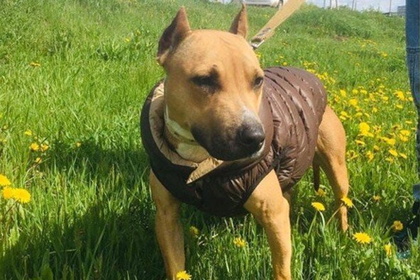 Помните историю брошенной на помойку бойцовской собаки? Вот так она выглядит у новых хозяев