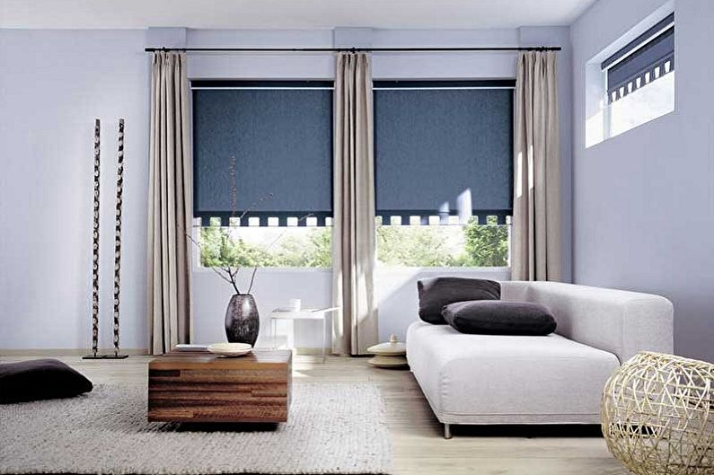 Оригинальным решением для гостиной станут рулонные жалюзи на пластиковые окна. Именно такая модель подчеркнет уникальный стиль интерьера и нетривиальный вкус хозяина дома. Светорассеивающие рулонные шторы в гостиную носят больше декоративный характер. Они гармонично смотрятся в сочетании с гардинами и классическими тканевыми портьерами, которые умело дополнят интерьер и позволят добиться нужной степени затемнения. Удачным вариантом станут и жалюзи из достаточно плотной ткани. Они создадут необходимый уют и будут выглядеть самодостаточными и без портьер. В миниатюрных гостиных выигрышно будут смотреться шторы в тон стен, однако желательно наличие узоров или рисунка на ткани. При выборе рольштор в гостиную учитывайте световую сторону. Если окна выходят на юг или юго-запад, не рекомендуется выбирать ткани темных оттенков. Либо стоит обратить внимание на шторы с защитой от выгорания. Если в гостиной установлен домашний кинотеатр, рекомендуем отдать предпочтение модели блэкаут для обеспечен