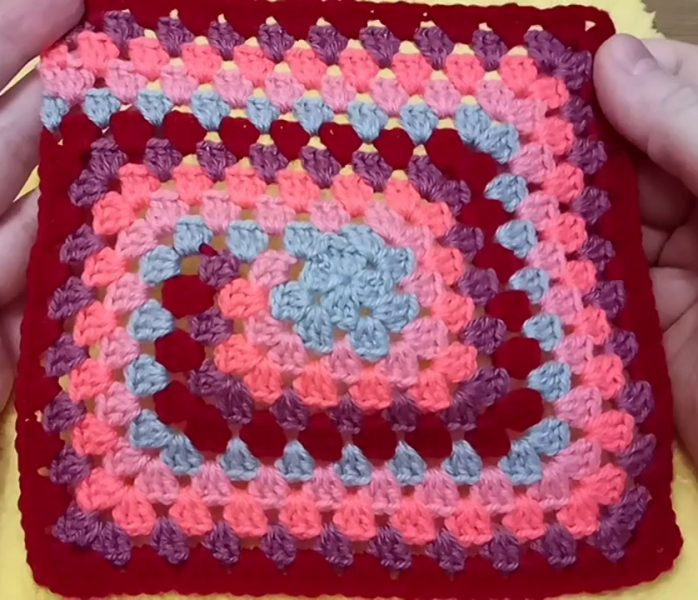 Интересная идея Бабушкиного Квадрата по спирали из нескольких цветов. Видео и много фото