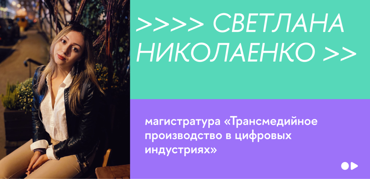 Поговорили с выпускницей программы «Трансмедийное производство в цифровых индустриях» Светланой Николаенко о проектной ориентированности программы, дипломной работе «На Живое» и о понятии «трансмедийности»!