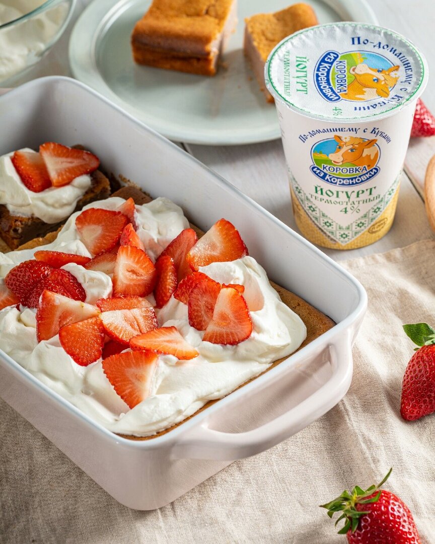 Если вы любите добавлять в выпечку ягоды, то этот рецепт для вас! Приготовьте йогуртово-клубничный кекс и наслаждайтесь его чудесным вкусом за чашечкой ароматного чая или кофе. Ингредиенты: