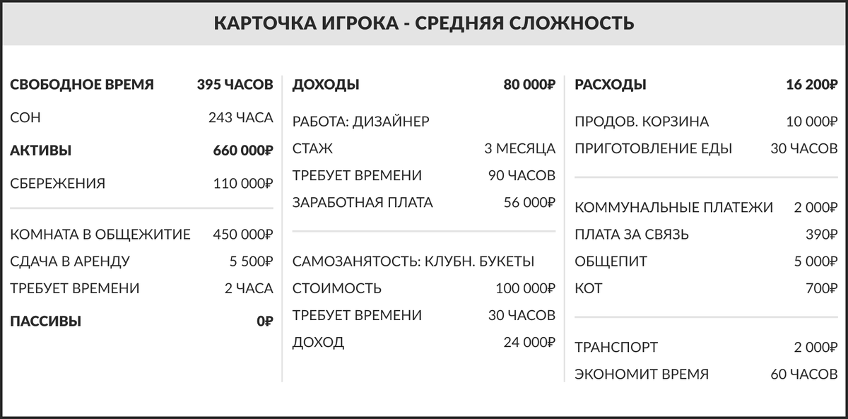 На 11 июля 2022 года: На протяжении 11 лет пытаюсь создать свой собственный бизнес, но успеха за одну ночь не случалось, ведь чтобы достичь величия требуется не один день. Когда занимаюсь самоанализом и задаю себе вопросы: “А как же стать лучше? Как же достичь результата? ”, то меня посещает мысль о создании виртуальной модели себя, которая помогла бы пройти путь намного эффективнее без отвлечения на раздражающие факторы. Впоследствии стала складываться модель, которая после привела меня к созданию настольной игры. В моей настольной игре «Перелом сознания», можно использовать стартовые карточки или оцифровать себя. Что значит оцифровать себя? Вы можете внести в приложении свои доходы, расходы, занятость, активы и пассивы. После вы увидите основные показатели, ваше свободное время и ваш денежный поток. Большая часть взаимодействия построена через приложение. Пришлось разобраться в nocode, чтобы сделать простенькое приложение на таблицах от Гугл. Так как вести доходы-расходы в бумажном в