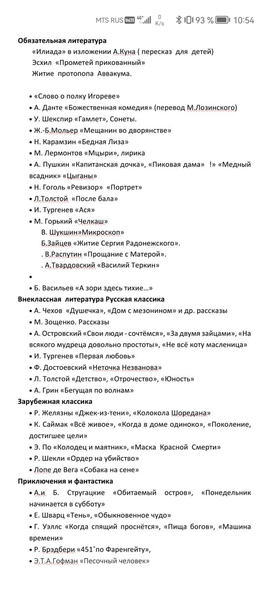 Вот, например, список книг для детей, которые переходят в восьмой класс. Это список моей племянницы, которая учится в обычной (государственной) московской школе. Списки моих учеников этого возраста из московских частных (весьма пафосных) школ и питерских государственных школ принципиально не отличаются.