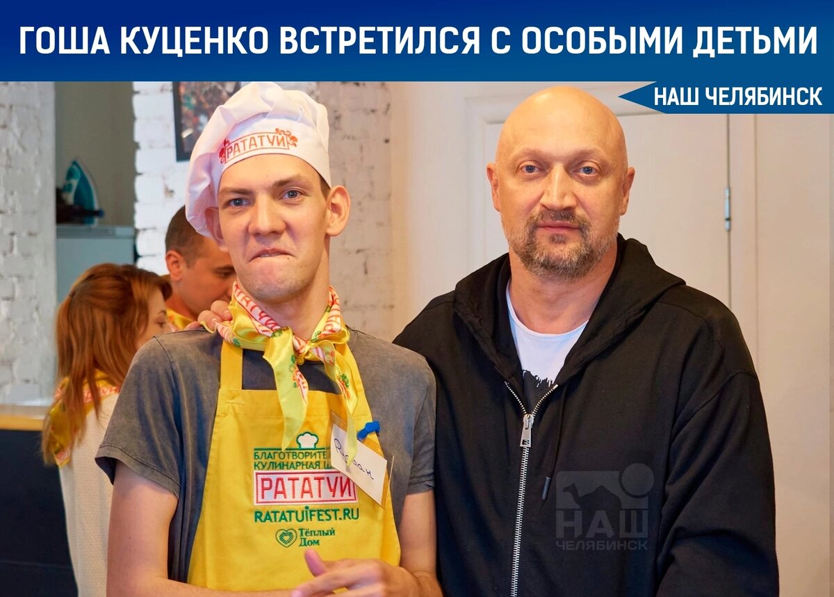😃 Российский актер театра и кино Гоша Куценко вновь встретился с подопечными Благотворительной кулинарной школы «РАТАТУЙ» - приемными и особыми детьми, которые на протяжении многих лет обучаются кулинарному искусству. 👨🍳 В кулинарной студии дети, чуткие воспитатели и волонтёры вместе готовили сырники, запекали яблоки, пили чай и общались с Гошей Куценко. Теплота и доброжелательность чувствовалась во всем. - Моему сыну Руслану исполнилось 25 лет. В фонде "Тёплый дом" сын состоит с 8 лет. У него инвалидность с детства, страдает ДЦП, ментальные особенности, не разговаривает. 5 июля Руслан был в числе приглашённых на мастер класс «РАТАТУЙ». - рассказывает мама одного из учеников Светлана, - И, вот, когда наше блюдо было готово, в студию вошли Михаил Щапов и... Гоша Куценко! Ведь он - популярный актёр театра и кино, а ещё - давний друг нашего фонда "Тёплый Дом"! Да! Вот это сюрприз! Гоша подарил детям свое фото, на котором, каждому ребёнку, написал персональное пожелание! 🙏🏻 Благотвор